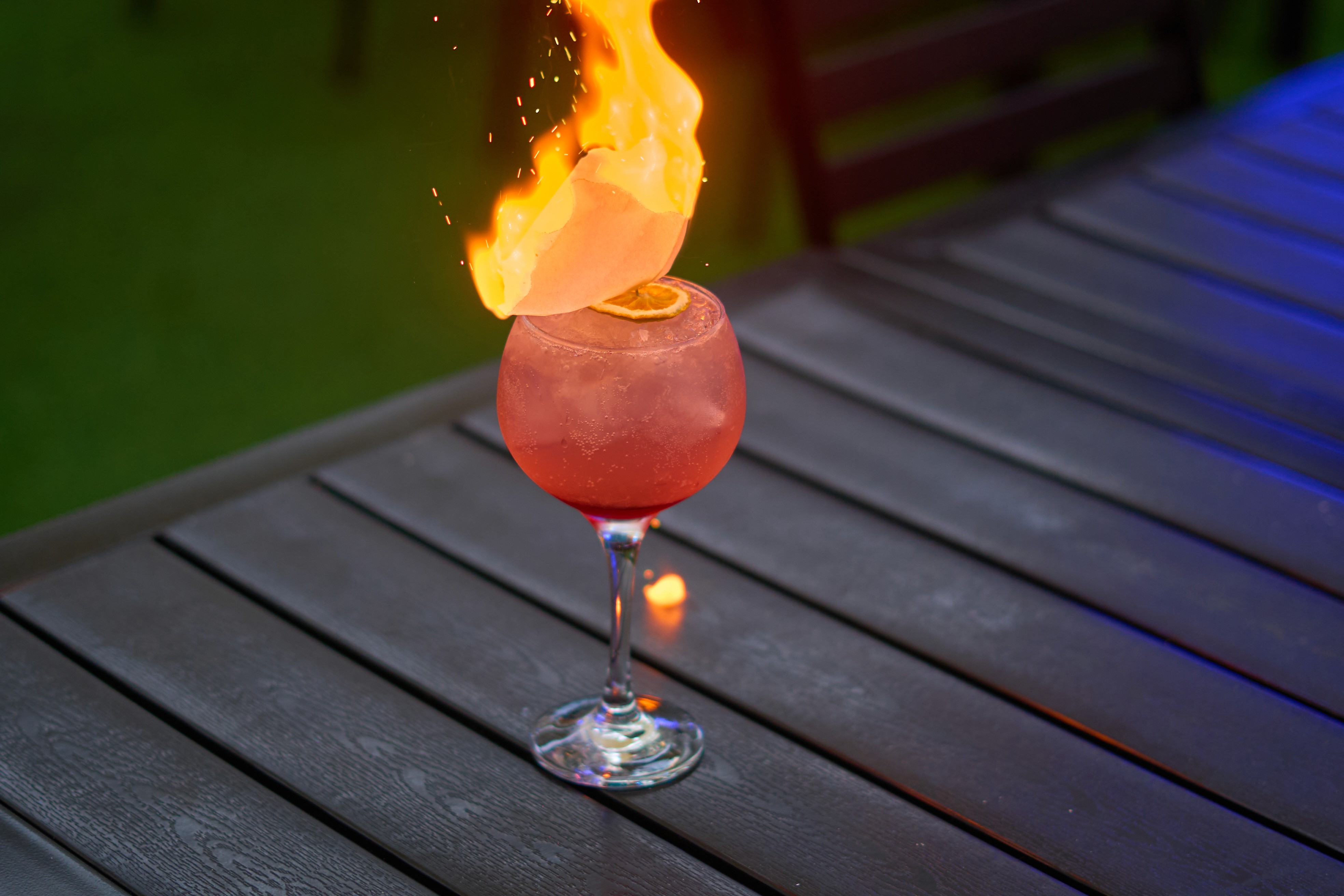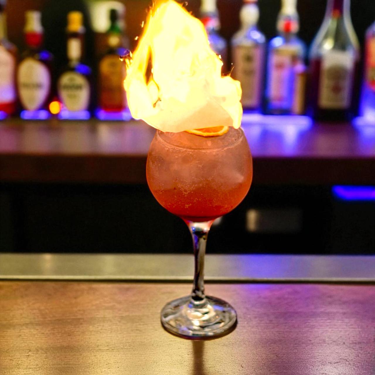 Servido con un toque escénico: un destello de fuego que revela